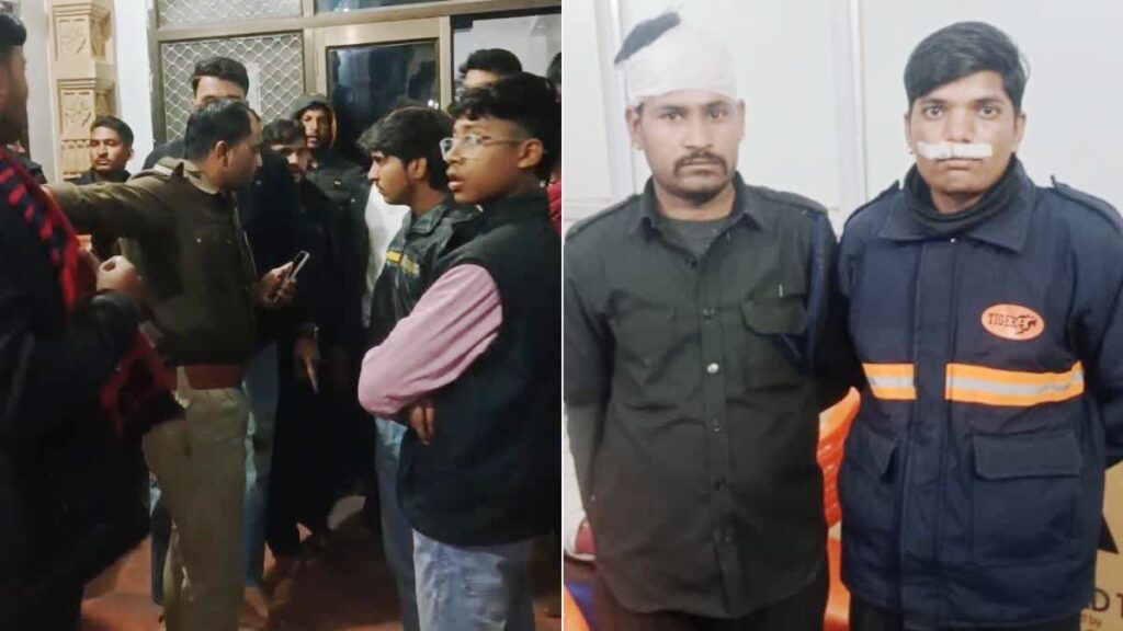 दूसरी ओर इस घटना के कुछ देर बाद ही सुरक्षाकर्मियों ने मध्यप्रदेश के कुकड़ेश्वर से आये श्रद्धालु प्रियांशु मालवीय के साथ मारपीट कर दी, जिससे उसके नाक से खून बहने लगा। श्रद्धालुओं ने पुलिस को फोन किये, लेकिन पुलिस कर्मी नहीं आये जबकि स्वयं सुरक्षाकर्मी उसे अस्पताल ले गये और उपचार भी करवाया।
