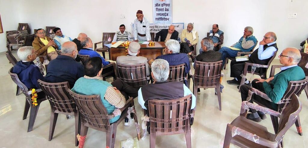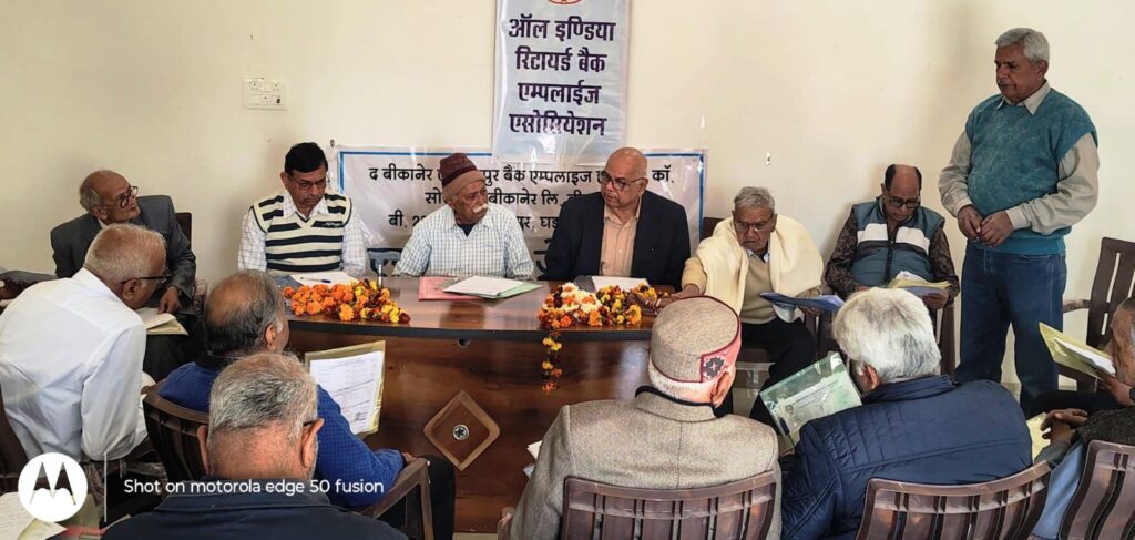 ऑल इंडिया रिटायर्ड बैंक एम्पलाईज एसोसियेशन की नवगठित राष्ट्रीय कार्यकारिणी की प्रथम बैठक एसबीबीजे भवन बीकानेर में संपन्न हुई। अजमेर निवासी रामलाल राव की अध्यक्षता में संपन्न बैठक में संरक्षक के आर उपाध्याय, सैक्रेटरी जनरल नंदलाल पंचारिया, उपाध्यक्ष सी एल जांगिड़ व जी एस खत्री सहित जोधपुर यूनिट के सचिव डी के परियानी मंचस्थ थे। बैठक के प्रारंभ में संगठन के दिवंगत सदस्यों को मौन रख कर श्रद्धांजलि अर्पित की गई।