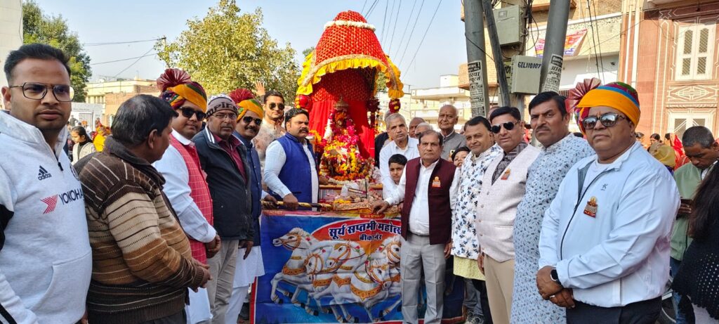 सूर्य सप्तमी महोत्सव रविवार को बीकानेर शहर में धूमधाम से मनाया गया। सूर्य भगवान के मन्दिरों में विशेष शृंगार व पूजा अर्चना की गई। घरों में भी भगवान सूर्य को अध्र्य दिया गया। लक्ष्मीनाथ मन्दिर परिसर स्थित सूर्य मन्दिर में भक्तजनों में पूजा-अर्चना कर सूर्य रथ यात्रा को रवाना किया। जिसमें गोरबंद से सजे ऊंट, सजे धजे घोड़े, केसरिया घ्वज लिये बालक और बालिकाएं घोड़ों पर थी। रवि रश्मि के बैनर के साथ देवी देवताओं की संचेतन झांकी व बैंड-बाजों के साथ सुरलहरियां बिखरती भजन मंडली की प्रस्तुतियां, बच्चों और पुरुषों के पचरंगी साफा पहने हुए थे। कई मौहल्ले में पुष्पों से स्वागत किया गया। रथ को सूर्य भगवान के जयकारे व नाच-गानों के साथ श्रद्धालु पैदल खींच रहे थे।