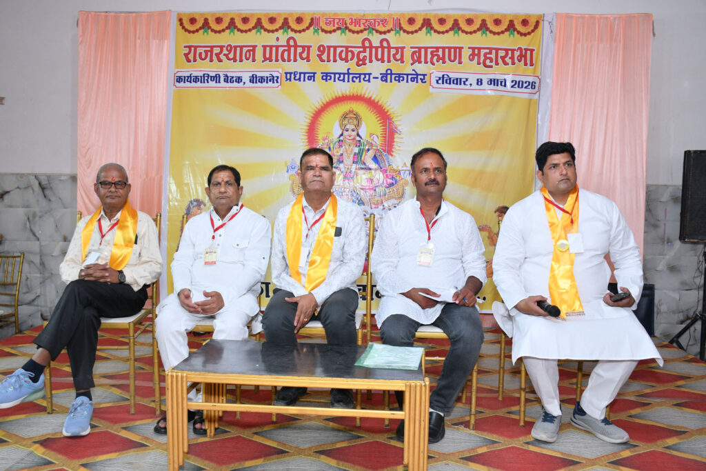 राजस्थान शाकद्वीपीय ब्राह्मण महासभा की कार्यकारिणी बैठक का आयोजन श्यामोजी वंशज सभागार में आयोजित हुआ बैठक में संगठन के स्वरूप, शसक्तीकरण, नवगठित कार्यकारिणी शपथ ग्रहण समारोह और वरिष्ठ जन का सम्मान समारोह आयोजित हुआ।